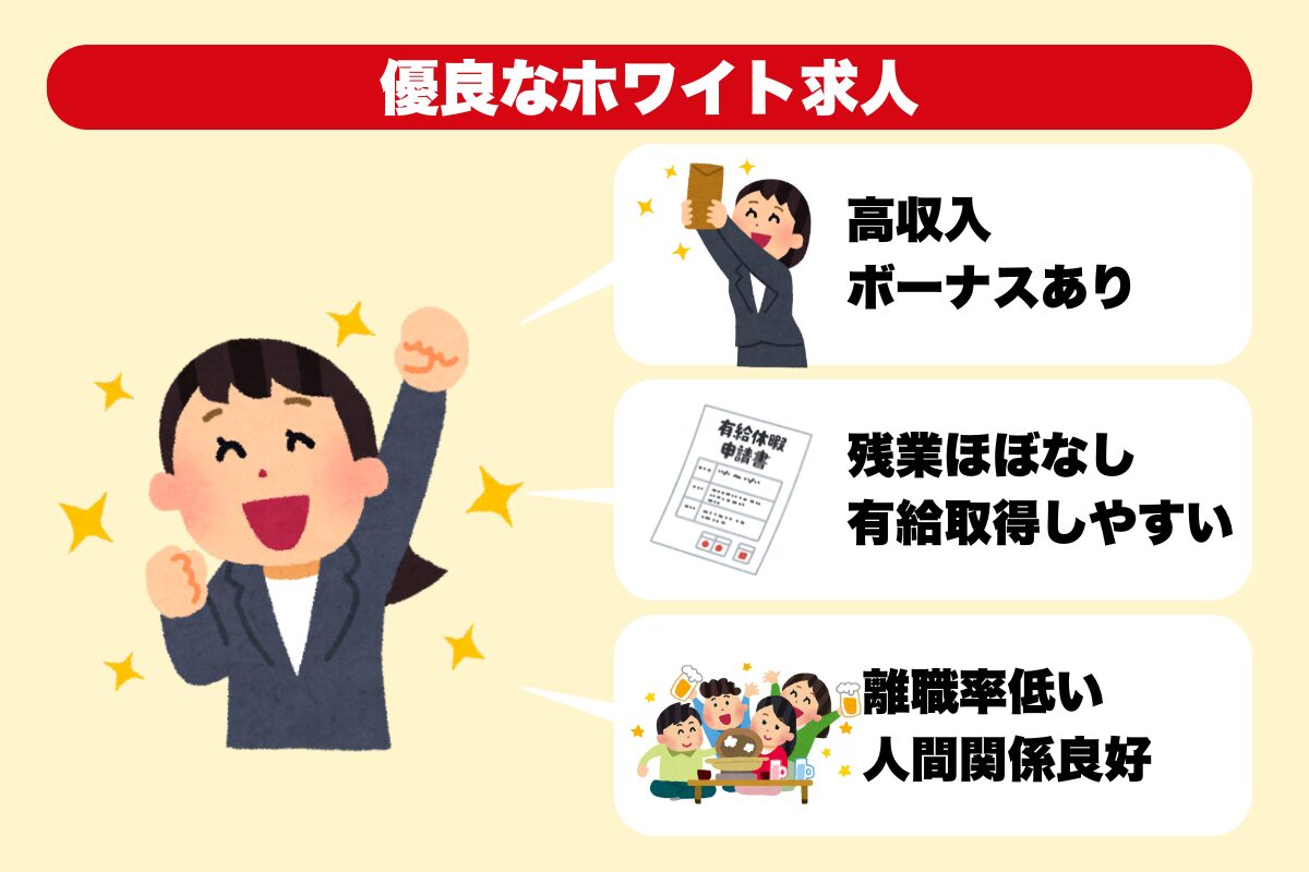 転職するなら、目指したいのは以下のような「優良なホワイト求人」。