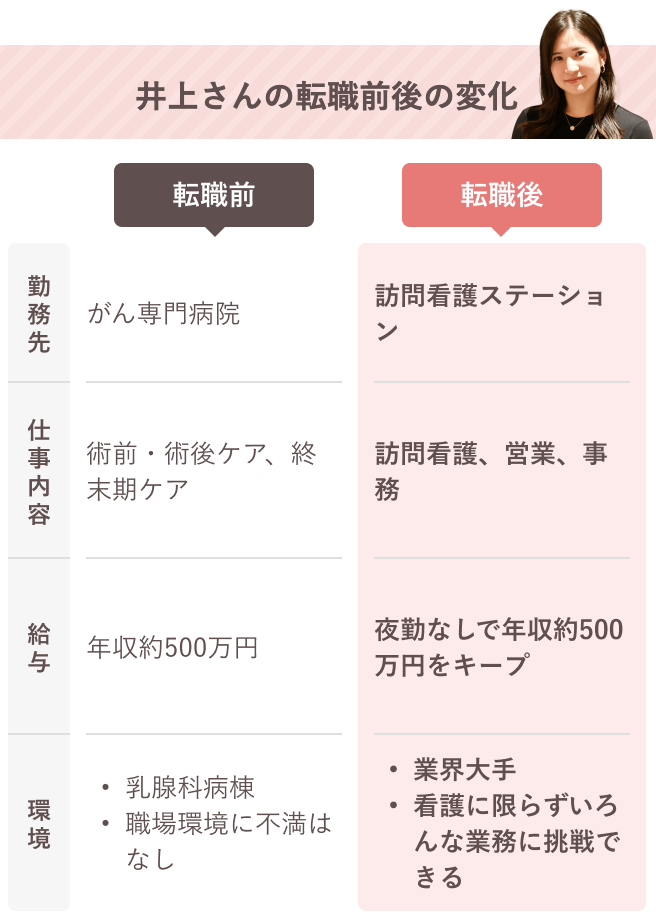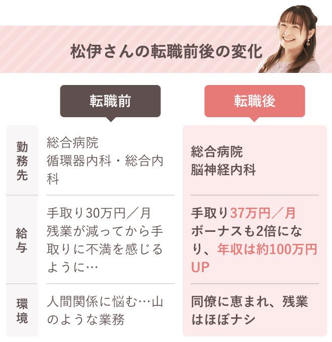 レバウェル看護が保有する「大量の非公開求人」と「職場の内部情報や実態情報」を活用して、ホワイトな職場へ転職している方が多数いる実績のあるサービスです。(以下はレバウェル看護で転職に成功した方の事例です)