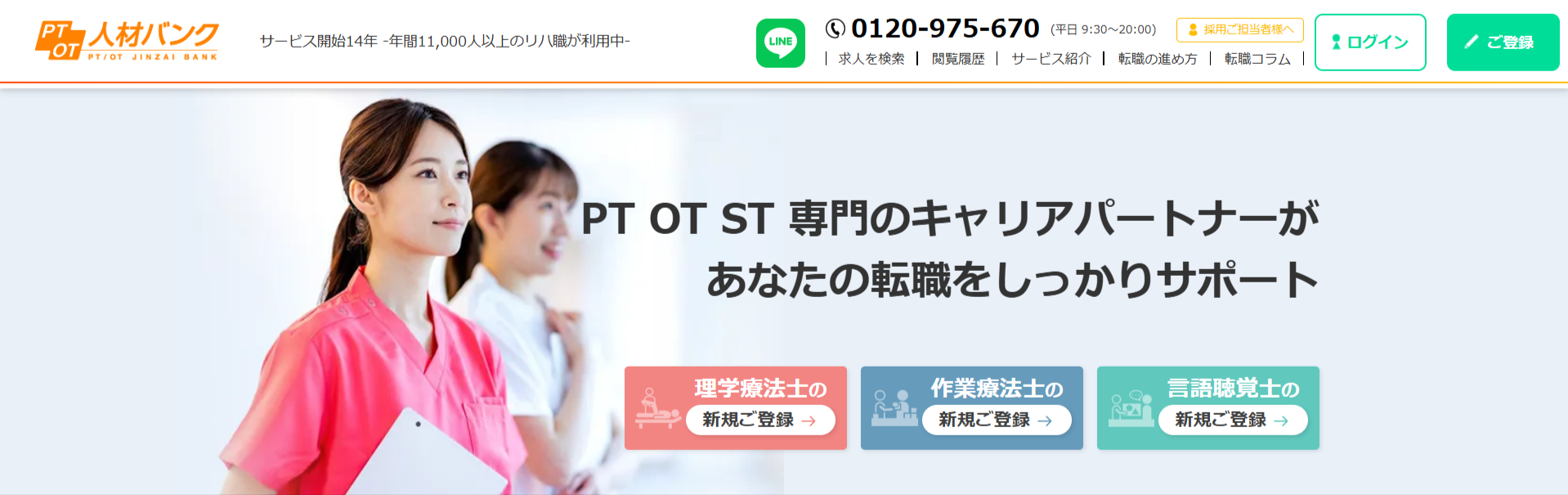 PTOT人材バンクは、理学療法士などのリハ職を対象にした、無料の転職サポートサービスです。