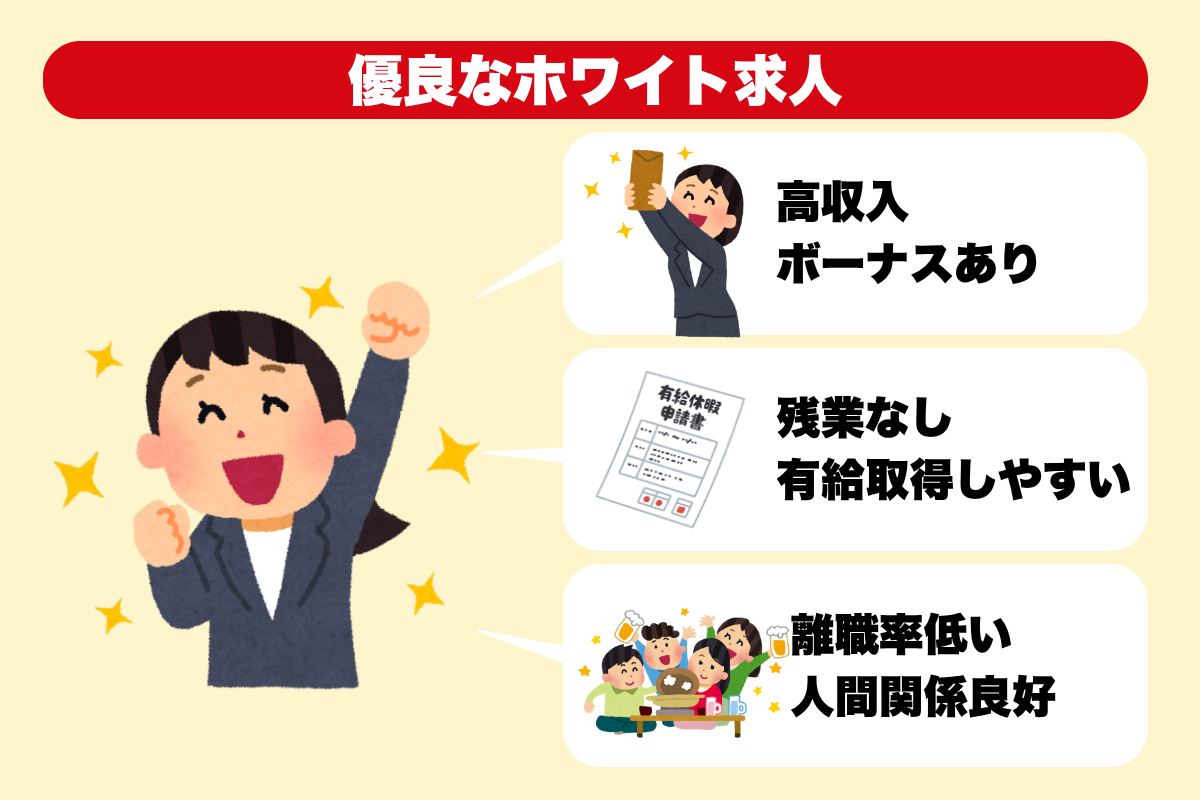転職するなら、目指したいのは以下のような「優良なホワイト求人」。