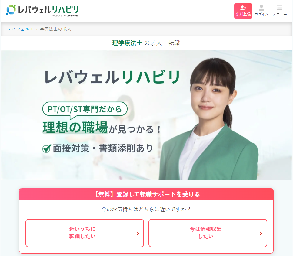 レバウェルリハビリは、リハビリテーション領域に特化した転職支援サービスです。