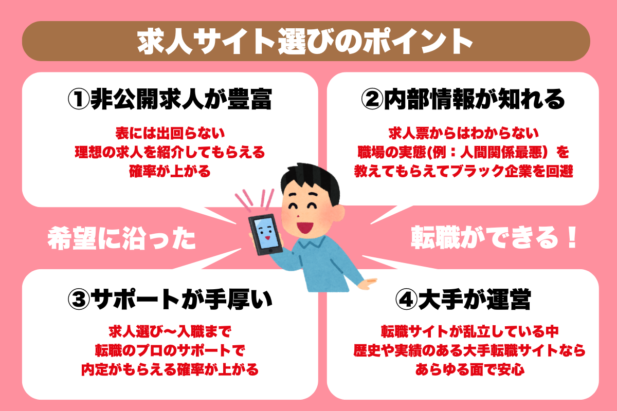 登録すべきは以下の4つのポイントを満たした理学療法士専門の転職サイトです。