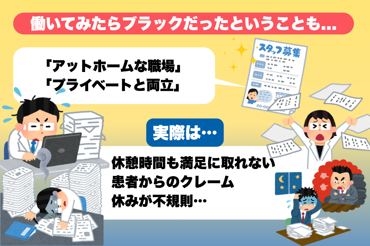 ブラックな調剤薬局が「うちはブラックです」と転職者に伝えるはずがなく、巧妙に隠して「ホワイト企業に見せかけてくる」のが実態です。