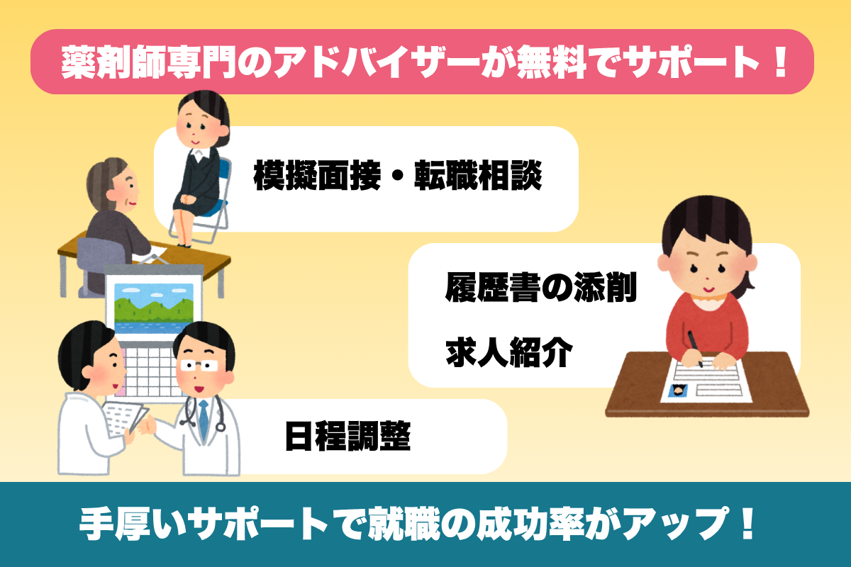 薬剤師専門のアドバイザーによる転職サポートが受けられる