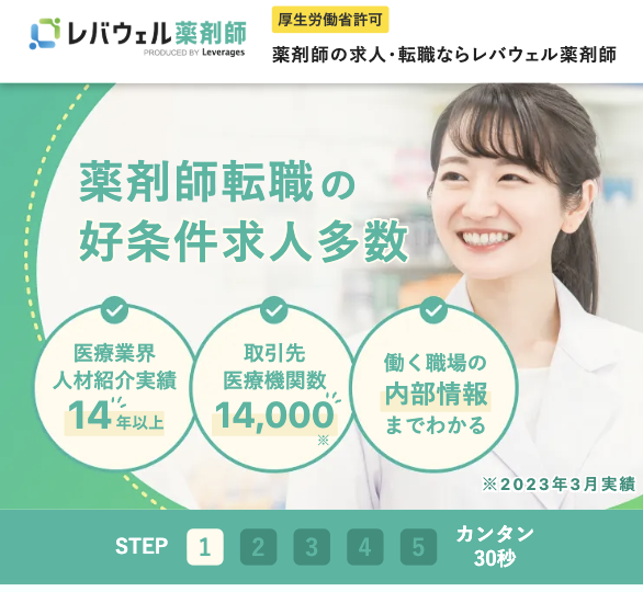 薬剤師の仕事をお探しの人におすすめなのは、非公開求人が多数で内部事情も分かる「レバウェル薬剤師」です!